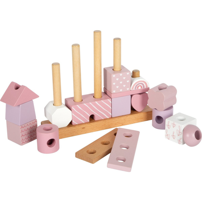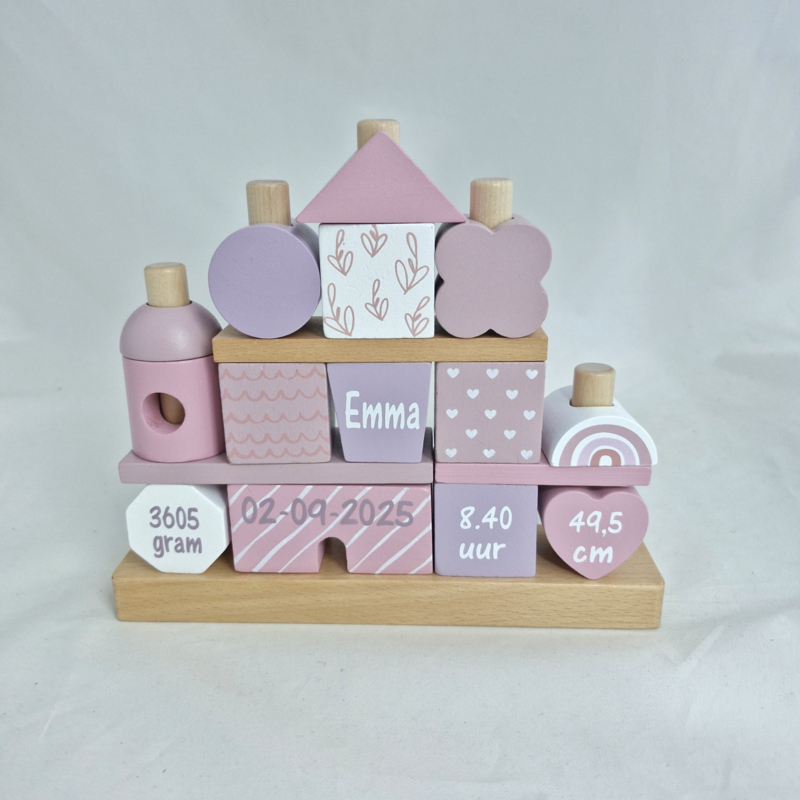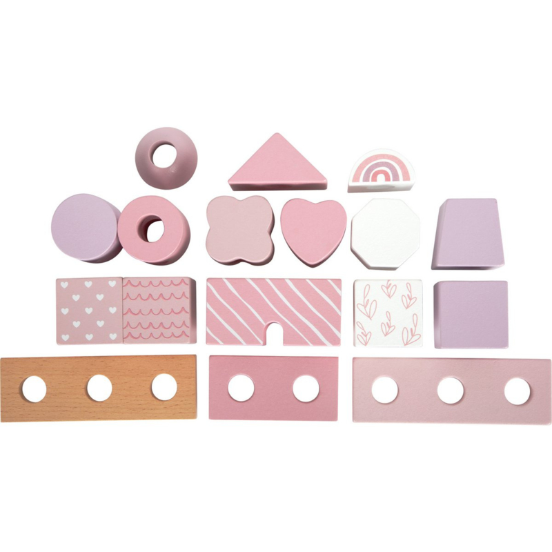Artikelnummer: B539 OverzichtEen creatieve constructie en spelplezier voor kleine handen! Dit liefdevol ontworpen stapelhuis gemaakt van hout van hoge kwaliteit in roze inspireert met een harmonieuze combinatie van witte, delicate pasteltinten en natuurlijke houtgekleurde elementen.