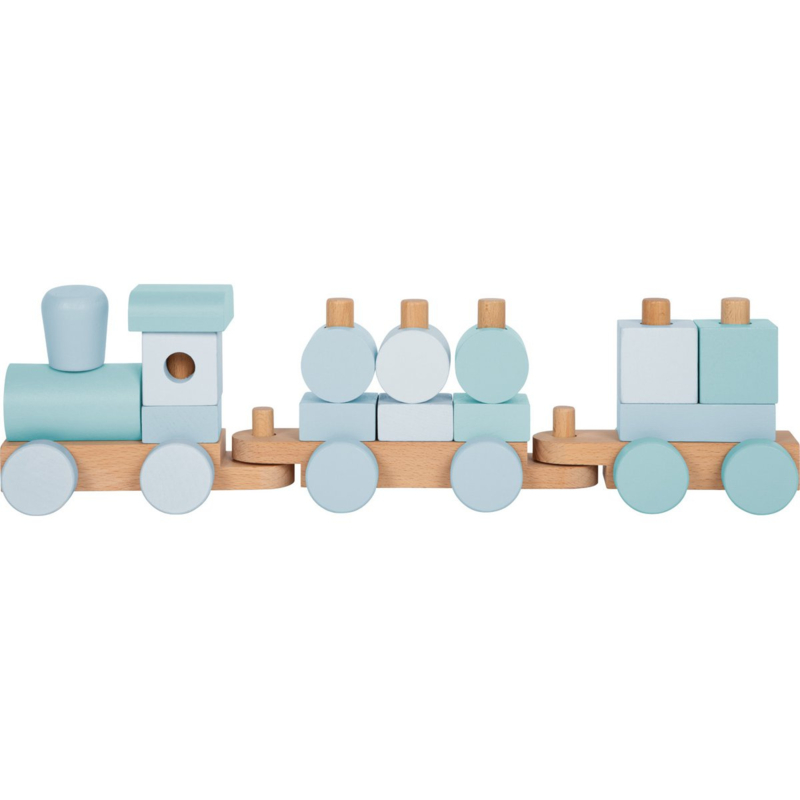 Houten trein pastelblauw