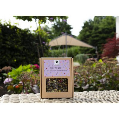 Artikelnummer: E065c OverzichtEen heerlijke zwarte thee vol met bloemblaadjes! De thee bevat onder andere lavendelbloesem, rozen-, korenbloem en goudbloemblaadjes.