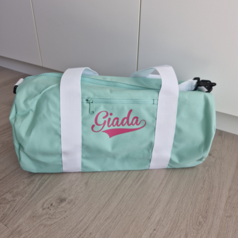 Artikelnummer: B363 OverzichtGa gezwind naar de sportclub of het zwembad met deze praktische sporttas met naam! De ronde vorm zorgt voor een vintage look. De sporttas bestaat uit een groot vak, groot genoeg voor handdoeken en sportkledij. Vooraan is er nog een klein zakje met rits. Ook te gebruiken als logeertas!