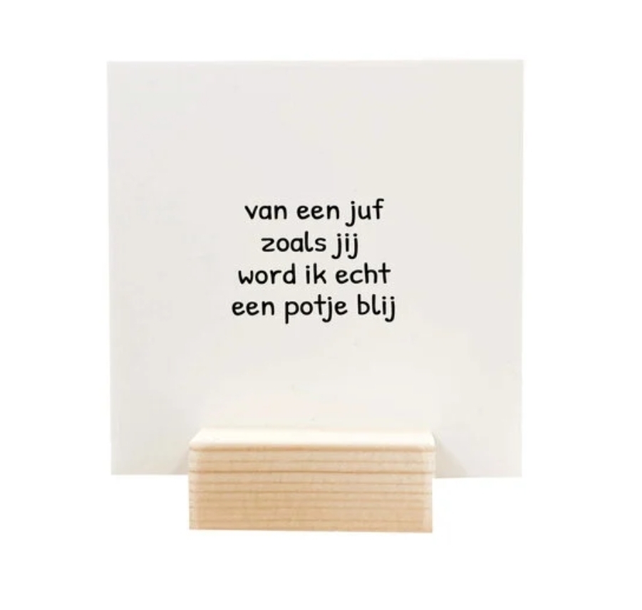 Een blockie bestaat uit een forexplaatje met quote en een houten voetje.