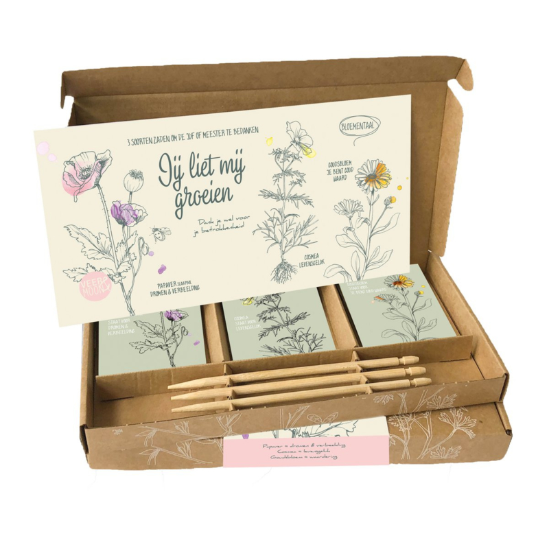Cadeaudoosje DIY zaden 'Jij liet mij groeien' juf of meester (Veer & Moon)Cadeaudoosje DIY zaden 'Jij liet mij groeien' juf of meester (Veer & Moon)